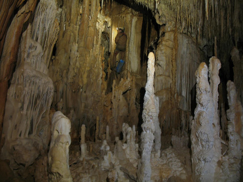 Gelegentlich findet man Stalagmiten, die so hoch gewachsen sind, dass sie sich mit dem Stalaktit darüber verbunden haben. Die so entstandene Säule nennt man Stalagnat.